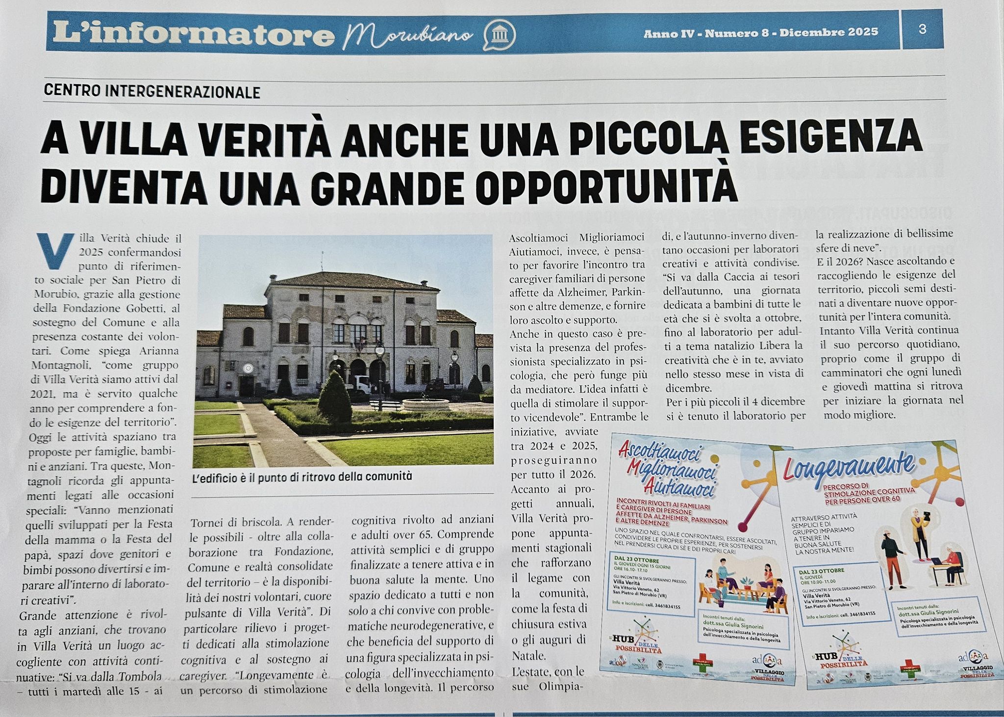 Fondazione Gobetti continua a essere il cuore operativo e umano di Villa Verità, dove i bisogni diventano opportunità e la comunità cresce insieme❣️